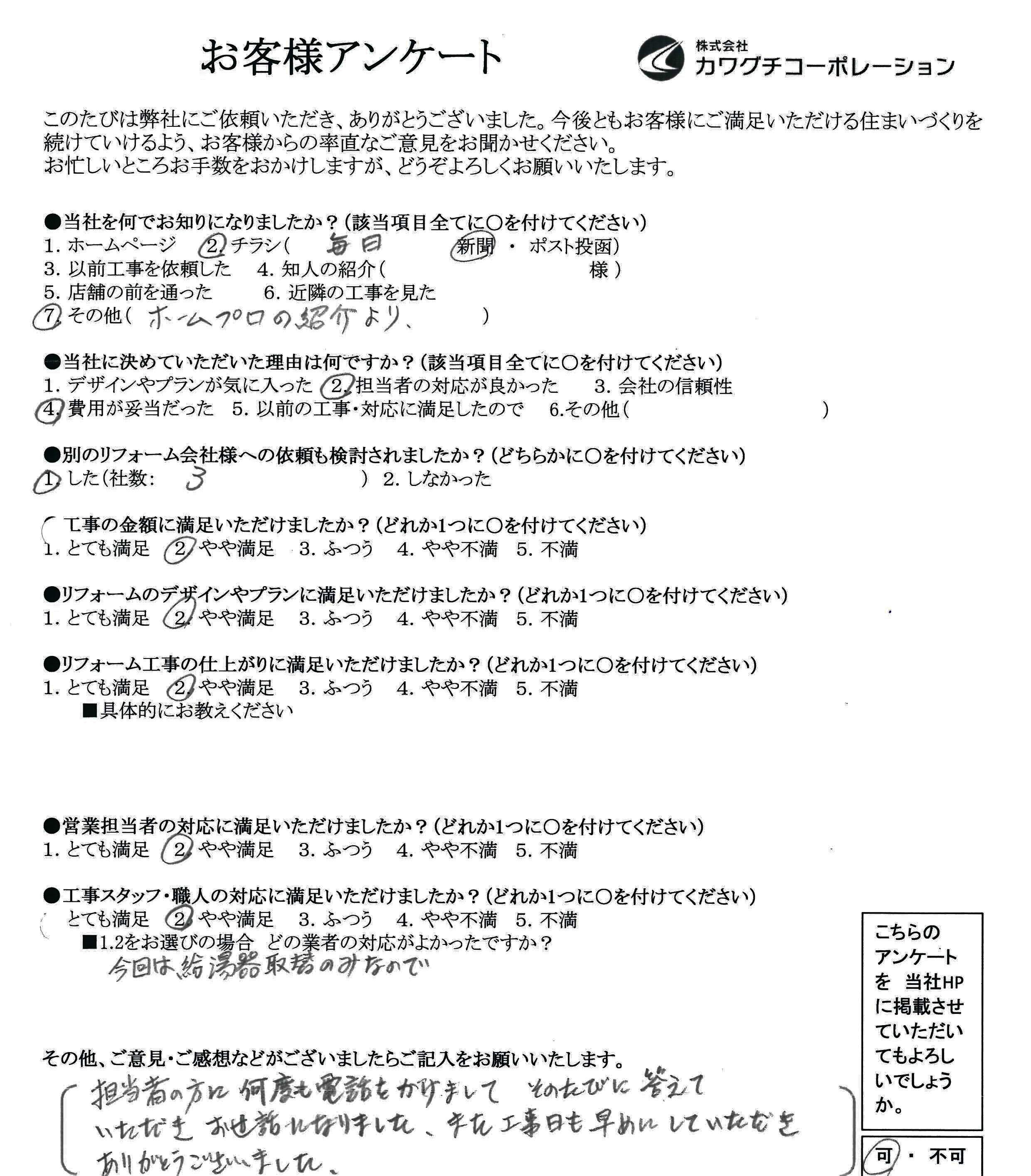 門真市 K様の声 給湯器交換