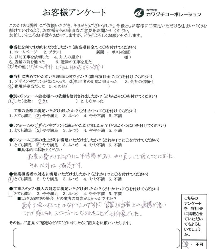 和室の畳の仕上がりに不信感があり、やり直しして頂くことになった。