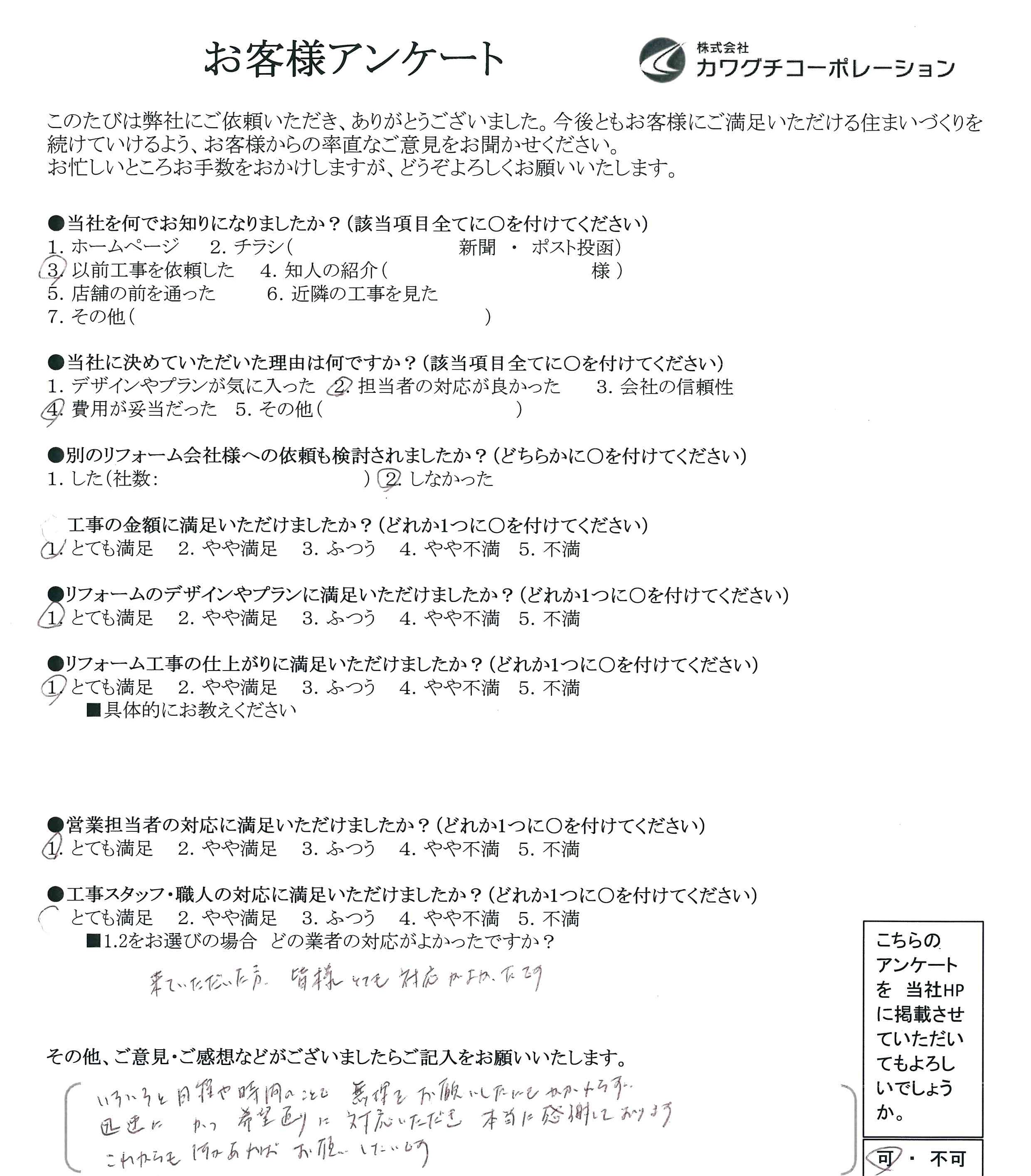 いろいろと日程や時間のことで無理をお願いしたにもかかわらず迅速にかつ希望通りに対応いただき本当に感謝しております。