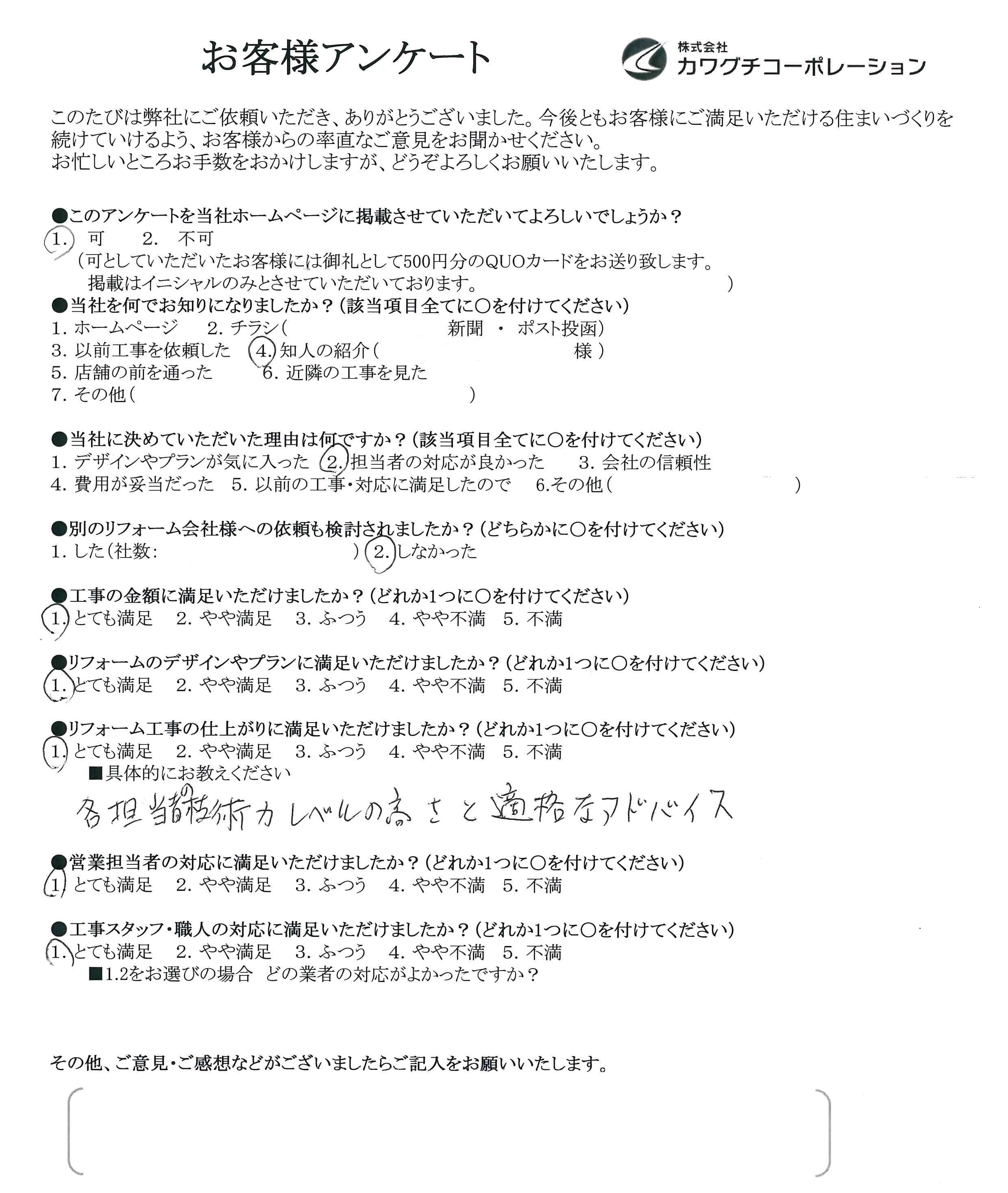 リフォーム工事の仕上がりに満足いただけましたか?