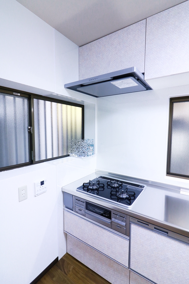 明るいキッチンにしたいとのことで 天板は人工大理石と決めておられました。 シンクは使い慣れたステンレスがいいとのことでしたので ステンレスの質がいいクリナップのキッチンをオススメしました。 設置方向を変え、少しキッチンを大きくしたので 今までよりも作業スペースが広くなりました。 手入れしやすいレンジフード 家事の手間が省ける食洗機を新設しましたので 雰囲気が変わった以上に、毎日の家事負担がラクになったことに お喜びいただけました。 |