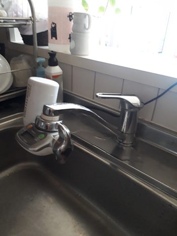 メンテナンスがラクなタカギの浄水器一体型水栓をオススメしました。 浄水器のフィルターが定期的に送られてくるので 交換し忘れ、買い忘れを防ぎ いつでも清潔新鮮な水を飲むことができます。 今回は卓上の食洗機をお使いでしたので分岐水栓を付けています。 |
