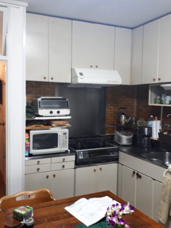 | お客様のご要望 | 排水が漏れるようになってきたので、キッチンを変えようと思った。 部屋のイメージに合う、永く使えるキッチンに交換したい。Lの角のところに家電をおくので、コンセントをつけて欲しい。 シンクの横に冷蔵庫を置きたいので、スペースを作って欲しい。 |