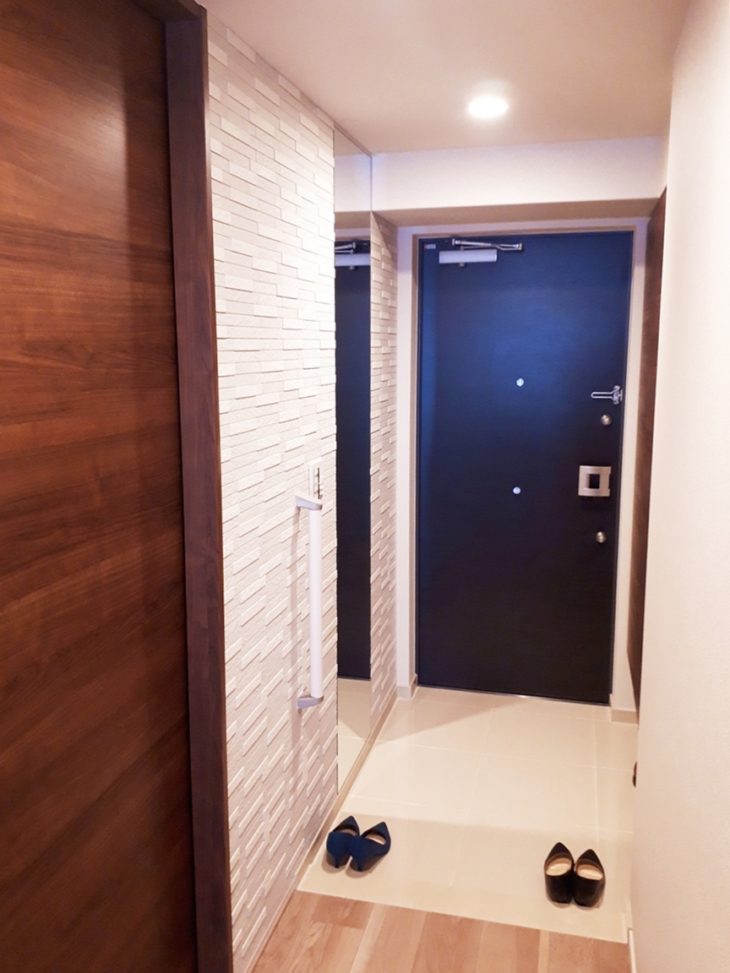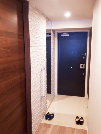 | お客様のご要望 | 新しくマンションをご購入され、真っ白でシンプルな空間をオシャレにしたい。 玄関に姿見がないので、天井まで大きな鏡が欲しい |
