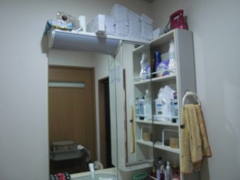 幅750の洗面台をお使いでしたが、洗濯パンとの間にゆとりがあったので そのデッドスペース分を幅1000の洗面台にすることで解消しました。 収納力が飛躍的にあがって、ご家族の持ち物を一箇所に集められるようになりました。 |